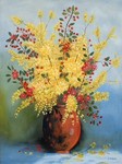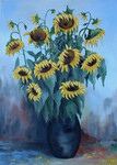 2008De zonnenbloemen zijn wat aan het verleppen, ze hebben ook al lang gestaan in de zwarte vaas.