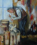 2008Dit beroep is ook bij ons in Brabant nagenoeg uitgestorven, het schilderstuk is gemaakt na een vluchtige schets op een jaarmarkt.